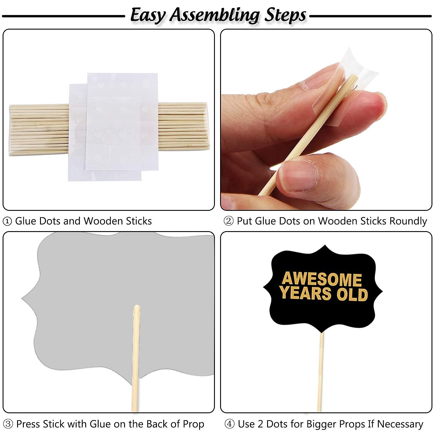 Photobooth props made with high quality papercard. Strong adhesive glue and stickers. Comes with wooden sticks and sticky dots. Simply DIY needed!