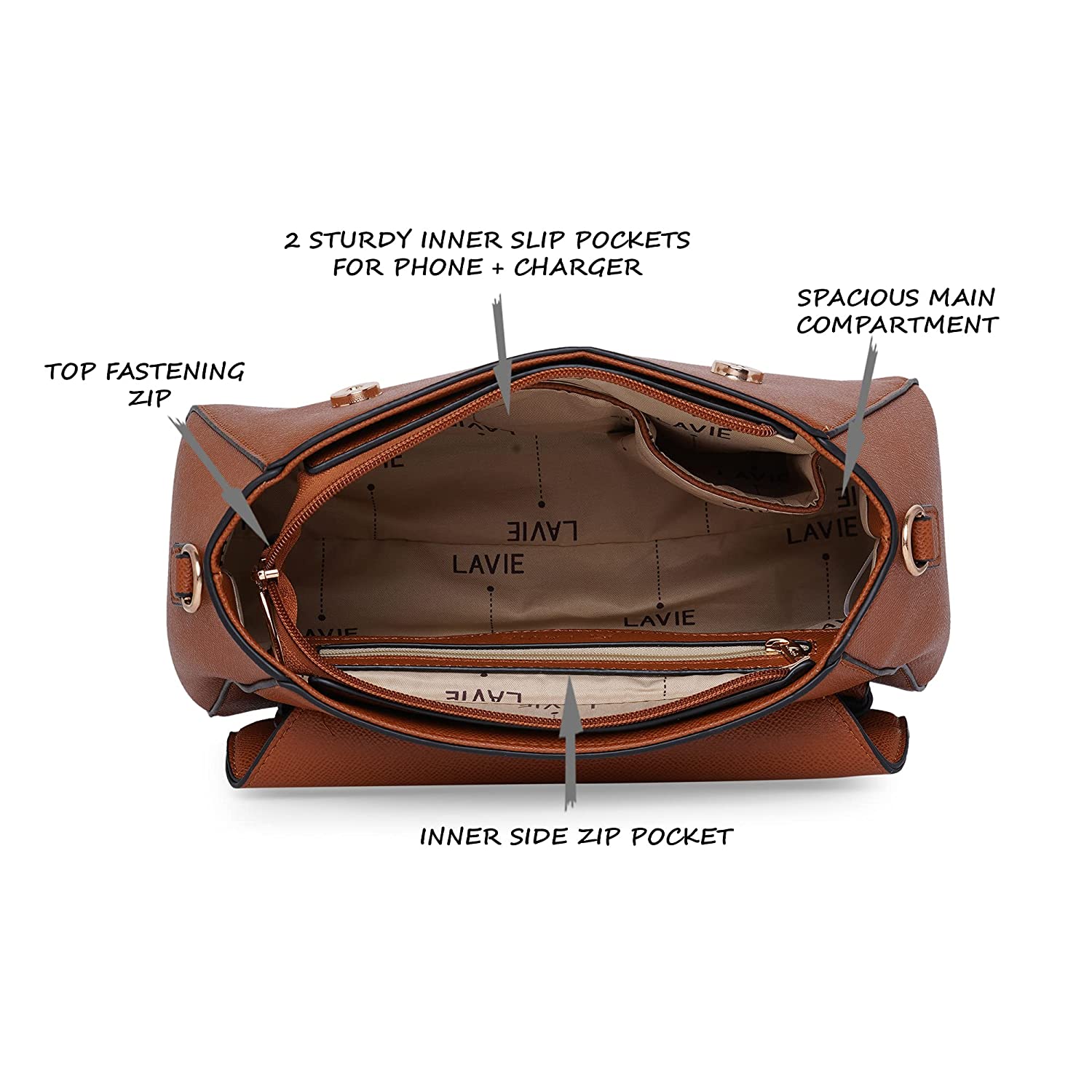Lavie Beech hand bag is a stylish bag for women who love styling up. It is durable, versatile and lightweight. It is available in classic black and gold color. Made from premium man-made leather, this hand bag has the latest pebble texture and premium gold toned metal hardware.