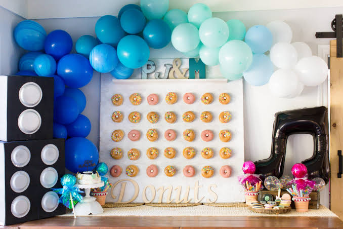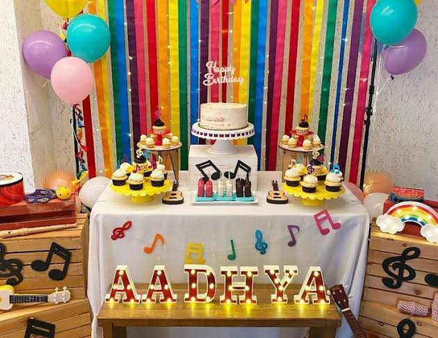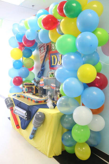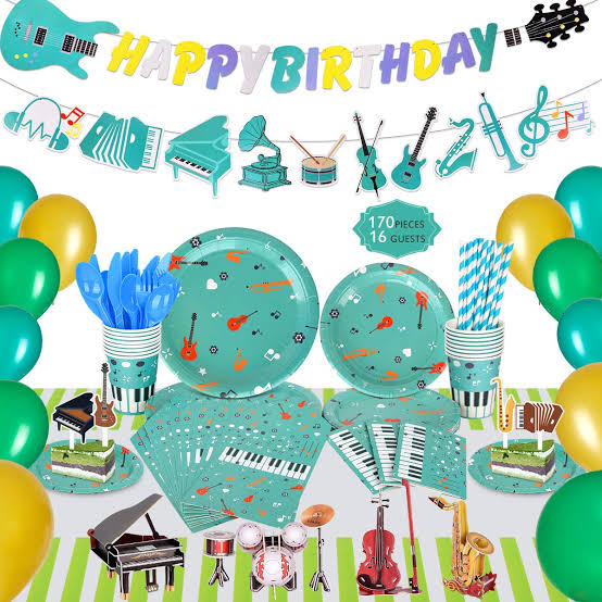 Music theme party decoration is specially designed by us with different types of instruments that the public loves, overall tone is lively GREEN and BlUE, creating a happy atmosphere for your distinctive party.Bass guitar hanging banner will be a huge hit for children who like music.