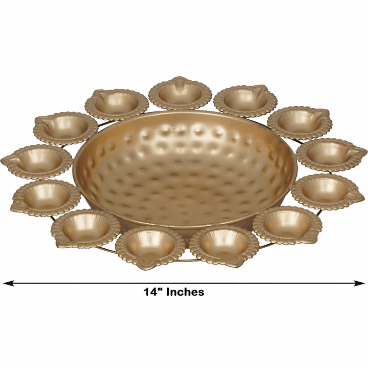 Webelkart Diya Shape Flower Decorative Urli Bowl for Home Handcrafted Bowl for Floating Flowers and Tea Light Candles Home ,Office and Table Decor| Diwali Decoration Items for Home ( 14 Inches)