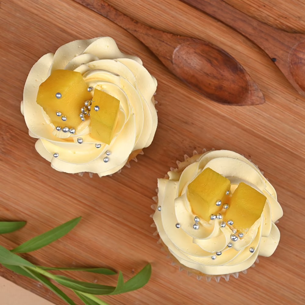 Product Description Who doesn't like mangoes? The goodness of this sweet and enticing fruit can now be enjoyed in a cupcake. The sponge cupcake base is siwrled with whipped vanilla icing with mango flavoured glazed. Relish the sweetness of mangoes and deliciousness of cake in every bite.