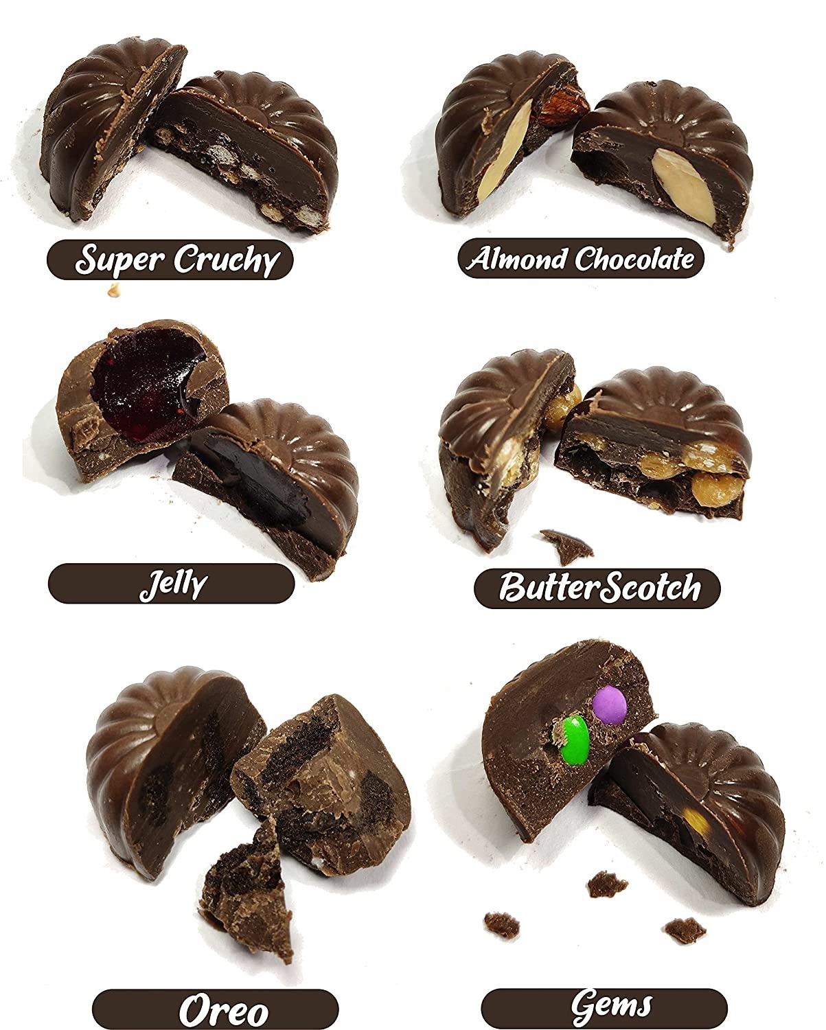 Each handmade Chocolate piece would Weigh approximately 10 gm. This is a Vegetarian product. Fssai Approved. Fresh and Delicious Chocolates for Each Order.